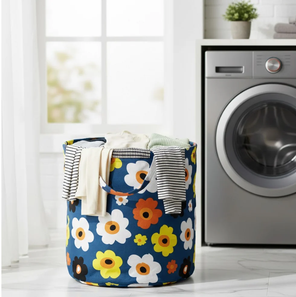 - Made In India laundry bin is lightweight, yet sturdy, and durable and completely collapsible. It is 100% waterproof, hence easily cleanable with damp cloth.